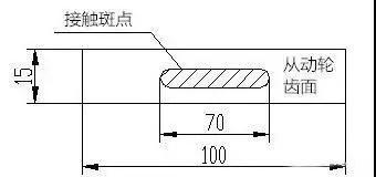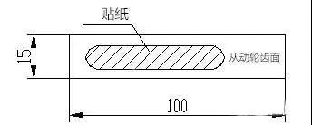 (2)用白色貼紙膠在從動輪齒面沿齒長方向的無嚙合接觸斑點位置,齒高方向要貼在漸開線部分,即嚙合區(qū)域,然后再進(jìn)行嚙合吃色,直至紙上漸開線部分全部覆蓋嚙合接觸斑點。