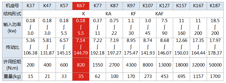 K系列減速機,結(jié)合國際技術要求制造,具有很高的科技含量,節(jié)省空間,可靠耐用, 承受過載能力高,功率可達200Kw,能耗低,性能優(yōu)越,減速機效率高達95%以上,振動小,噪音低,節(jié)能高,選用優(yōu)質(zhì)鍛鋼材料,鋼性躊鐵箱體,齒輪表面 經(jīng)過滲碳淬火,經(jīng)過精密加工,構成了斜齒輪、傘齒輪,錐齒輪傳動總成的減速機。