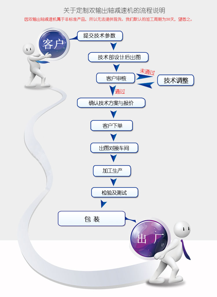 雙輸出軸減速機(jī)僅僅是非標(biāo)準(zhǔn)減速機(jī)中較有代表性的產(chǎn)品之一,在十多年的產(chǎn)品定制過程中,我們接觸了太多的非標(biāo)減速機(jī)案例,比如6軸、8軸、甚至還有14軸的多軸減速機(jī)。其實(shí),我們關(guān)心的不是您的設(shè)備需要幾根輸出軸,我們關(guān)心的是,您的技術(shù)參數(shù)是否準(zhǔn)確并完整。只要技術(shù)參數(shù)到位了,正常情況下,我們都可以給出佳的技術(shù)方案。