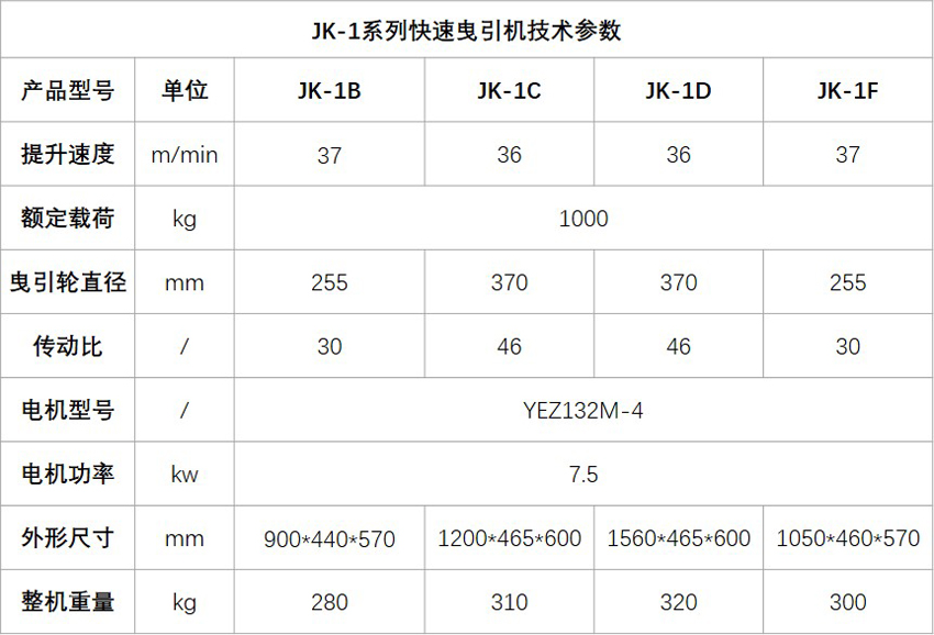 工作效率大幅提升。JK-1B型曳引機的的提升速度是37m/min,是慢速卷揚機速度的2倍。